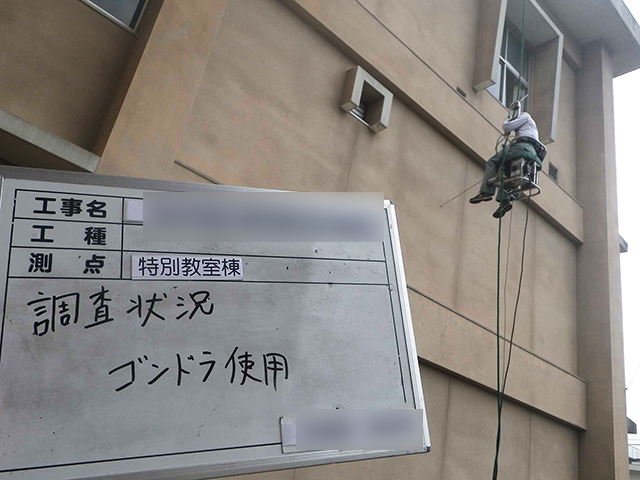 従来から行われて来た打音調査と異なり、足場を組む必要がないため、大幅なコストダウンを見込めるほか、マンションなど住居の調査時には住人のプライバシーへの配慮を行なう必要が少なく、安全かつ速やかな作業が可能なため、主に「外壁調査の定期点検」等で利用されています。